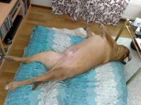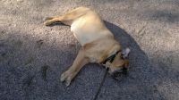 Tosin, lenkilläkin on kiva käydä, kunhan mennään sinne minne mä haluan! Jos palvelusväki valitsee reitin huonosti, olen keksinyt loistavan keinon protestoida; usko tai älä, kaadun suorilta jaloiltani kyljelleen pötköttämään. Siinä ne sitten koittaa maanitella ja lahjoa, että nousisin ylös. No mä nousen sitten kun huvittaa....tai lahjus on riittävä.