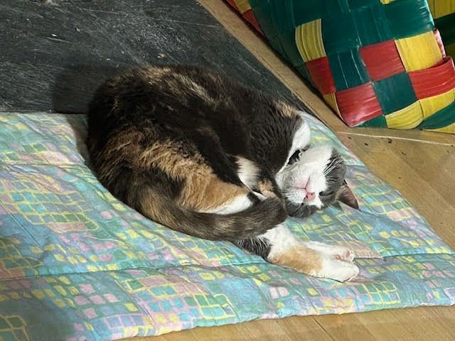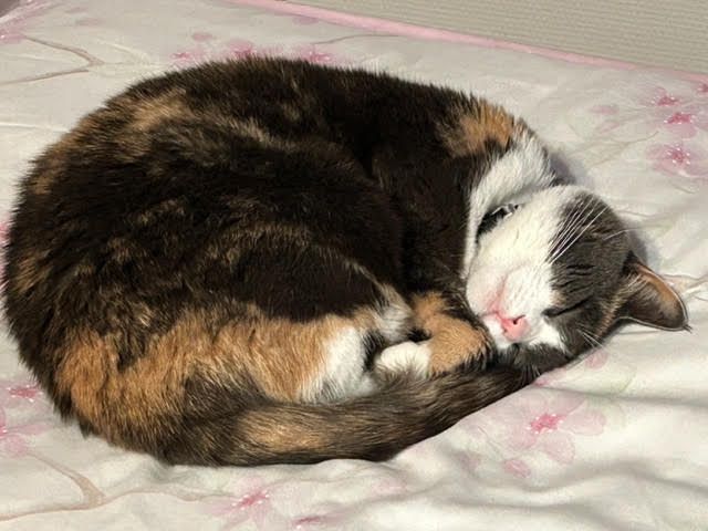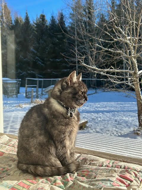 Yöt hän viihtyy tiiviisti meidän vieressä, nauttien lämmöstä kuten kissan kuuluukin.
